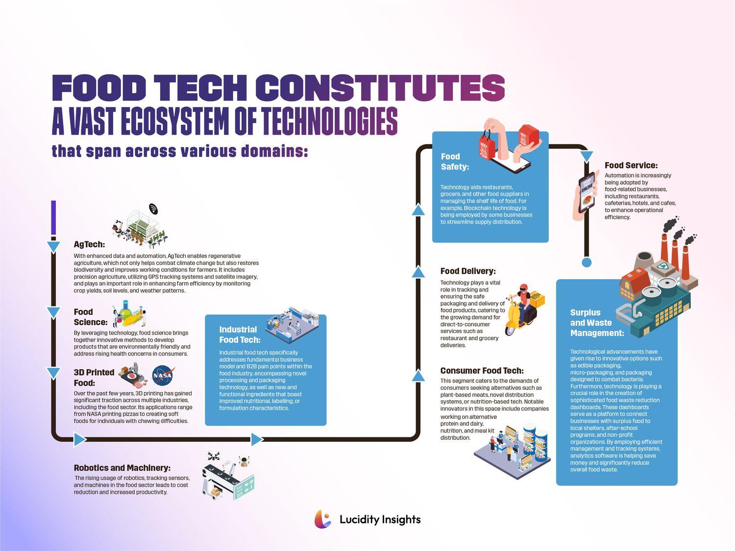 The ecosystem for foodtech is vast as well, ranging from agricultural tech to surplus and waste management.