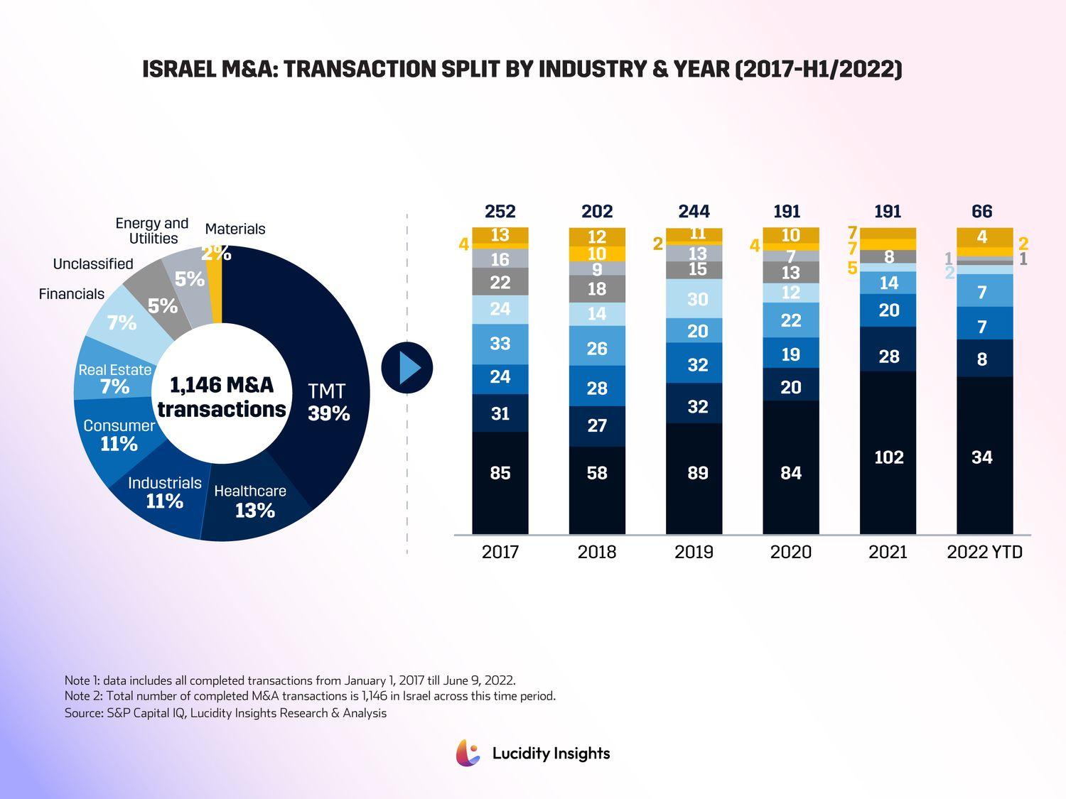In Israel, however, the TMT (Technology, media and telecom) sector is the heavy-weight, accounting for 37% of all executed transactions in the country.