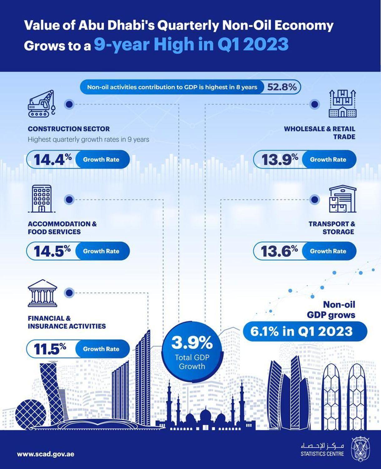 Value of Abu Dhabi's non-oil economy grows to a 9-year high in Q1 2023